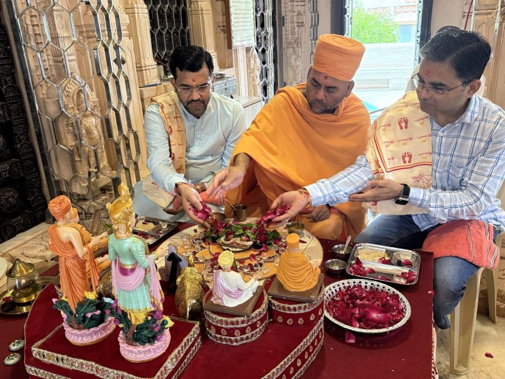 આજે કામિકા એકાદશીના પવિત્ર પર્વે BAPS સ્વામિનારાયણ મંદિર, સુરેન્દ્રનગર દ્વારા આયોજિત વૈદિક મહાપૂજામાં યજમાન તરીકે સહભાગી થવાનો સૌભાગ્ય પ્રાપ્ત થયું જે બદલ BAPS સ્વામિનારાયણ મંદિર સુરેન્દ્રનગરના કોઠારીશ્રી પૂ. ધર્મચિંતનદાસજી સ્વામી અને સ્નેહીમિત્ર શ્રી હિતેશભાઈ સોનીનો હૃદયપૂર્વક આભાર વ્યક્ત કરું છું.