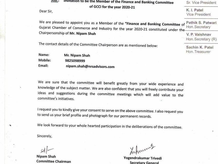 Invitation to be the Member of the Finance and Banking Committee of GCCI for the year 2020-21. by nareshkella | May 13, 2025 | Business and trade | 0 comments Submit a Comment Cancel replyYou must be logged in to post a comment.